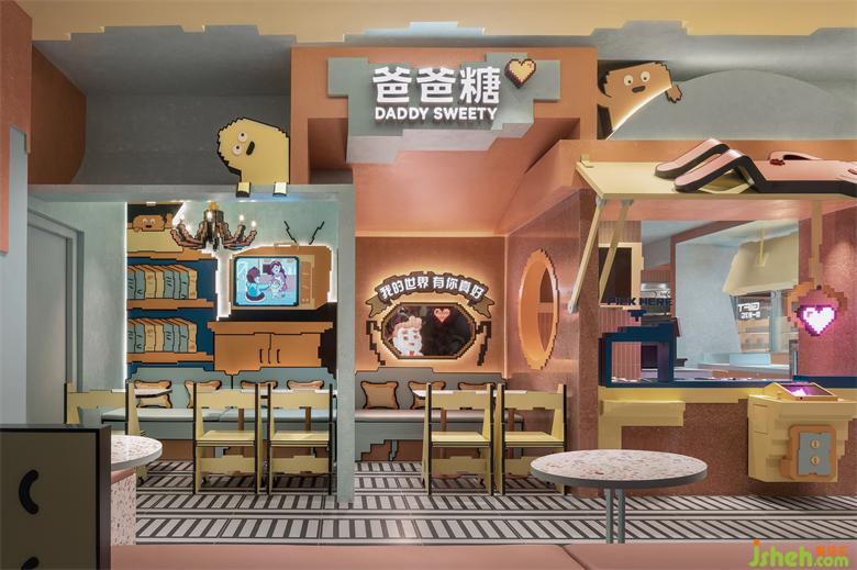 爸爸糖手工吐司像素Lab店鋪設計,以全新理念搭建成人和孩童在情感上互通的體驗樂園,OYTT設計團隊從游戲中汲取創(chuàng)意靈感,結合《超級馬里奧》經(jīng)典懷舊風格,店鋪設計讓二進制像素和吐司立方塊結合,為消費者搭建爸爸糖吐司的游戲小鎮(zhèn),聯(lián)結品牌和消費者互動的渠道,以此傳遞品牌調性。