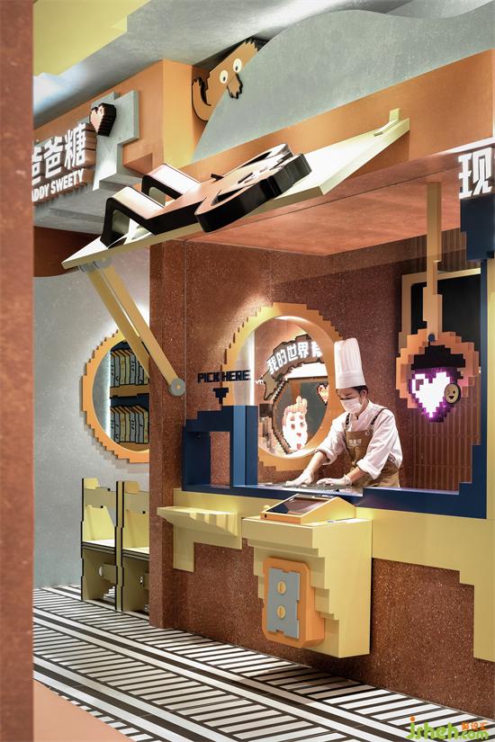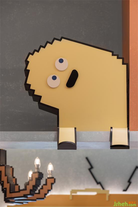 Composed of three-dimensional blocks with cute and vivid shapes, the space incorporates a variety of cartoon elements. Adopting a superimposed arrangement and combination method of building blocks, the entire space is filled with classic nostalgic pixels style, creating an interlaced sense of crossing into a game world, which stimulates the deep desire for discovery.