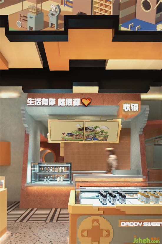 空間以立體方塊搭建組合而成,造型可愛(ài)生動(dòng),并融入了多種卡通元素,店鋪設(shè)計(jì)以積木搭建疊加的排列組合,讓空間實(shí)現(xiàn)從上到下、由里而外都彌漫著經(jīng)典懷舊像素風(fēng),給人一種仿佛穿越到游戲世界的空間交錯(cuò)感,激發(fā)心底探索的渴望。