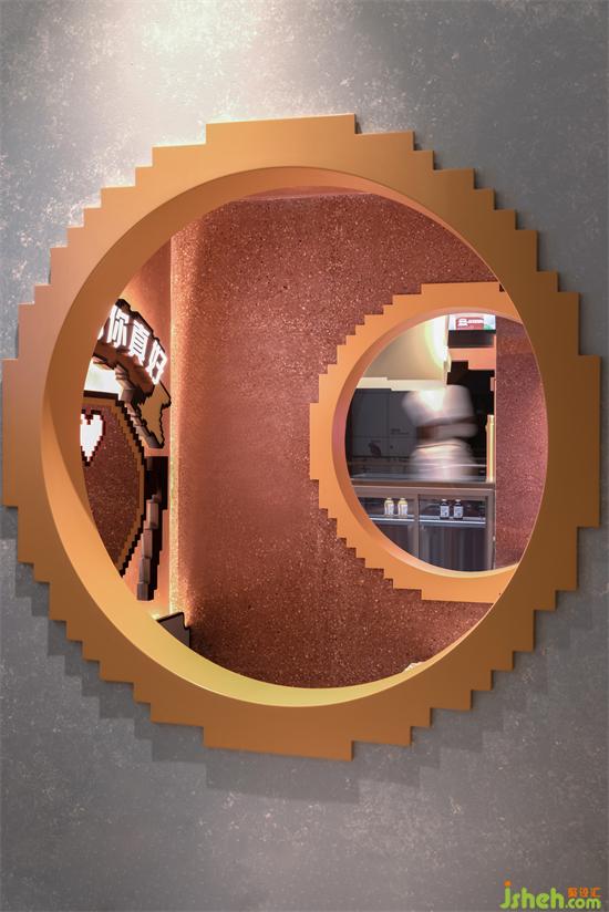在空間景觀縱深上,設(shè)計(jì)團(tuán)隊(duì)采用隔斷、鏤空窗體、玻璃、以及豐富的背景墻呈現(xiàn)多元視覺(jué)延伸體驗(yàn),墻體乃至天花板都進(jìn)行諸多像素風(fēng)細(xì)節(jié)處理,店鋪設(shè)計(jì)以層層疊加的方式營(yíng)造更為立體的3D世界游戲環(huán)境,流暢的沉浸式氛圍感在瞬間迸發(fā)。