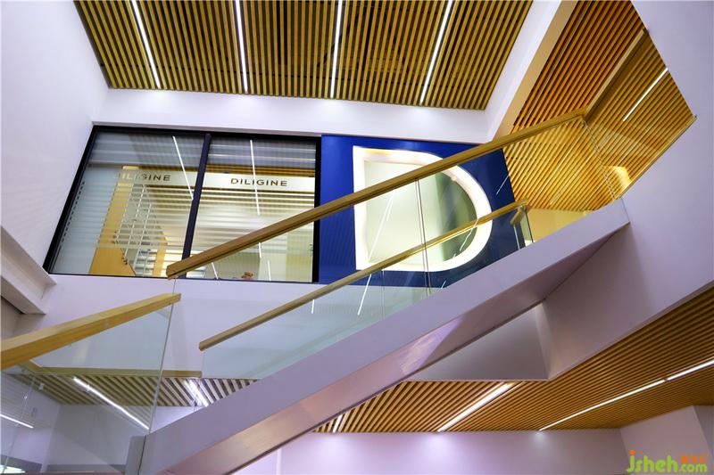 突破傳統(tǒng)科技辦公藍調(diào)冰冷,崇尚木色的溫度,匯成線的唯一語言,在白色空間中暢游,點代表品牌的“D”為綴;高低、前后、橫豎、直斜、錯落的虛實在光中對話……