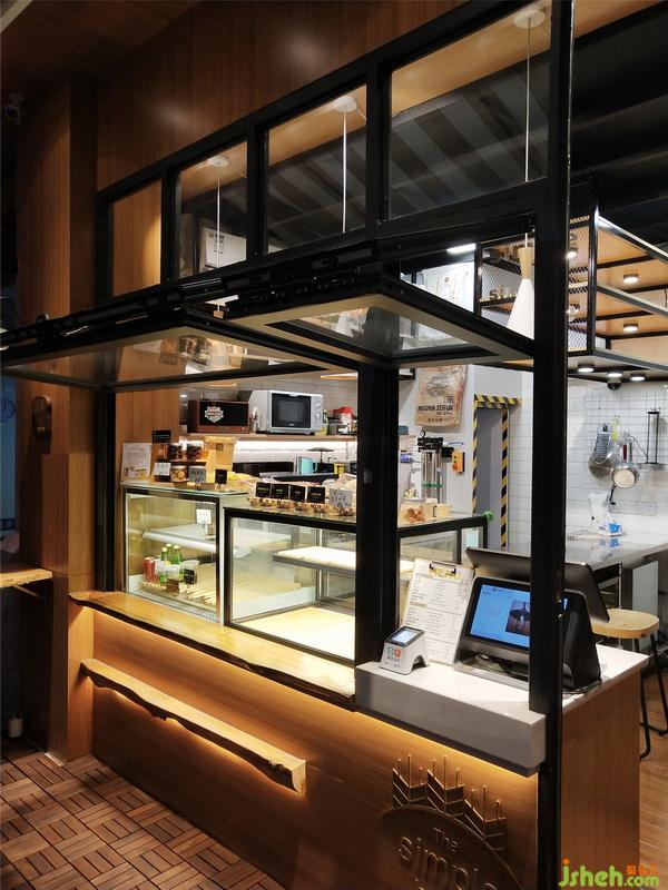 80cm寬的收銀臺(tái),陳列柜,冷藏柜緊湊組合設(shè)計(jì)。
