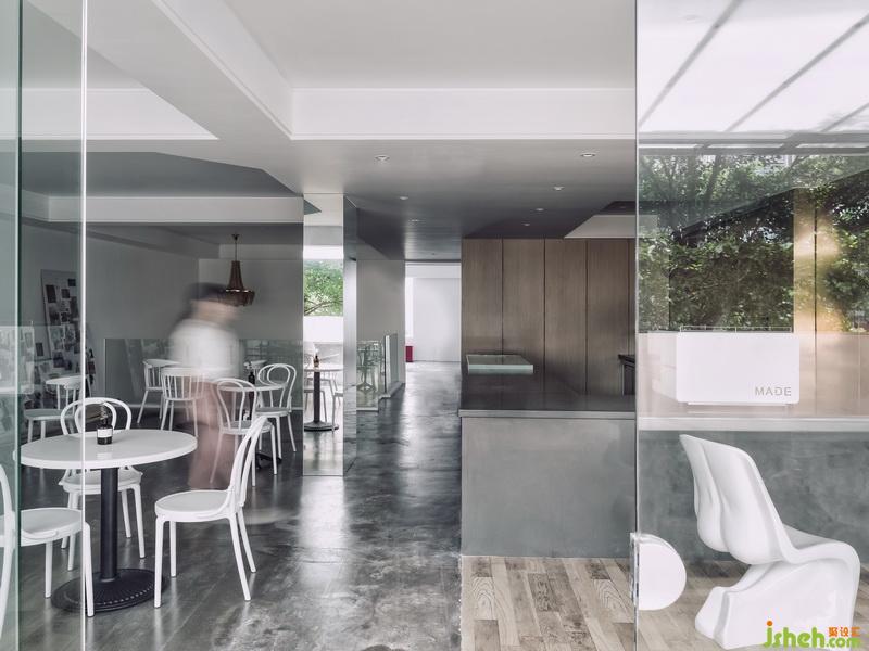 二層餐飲空間主營咖啡與甜品,延續(xù)首層的設(shè)計元素,木頭質(zhì)感與金屬質(zhì)感漸漸過渡,留白處只允許光影對其進行修飾。看似隨意座落一地的藝術(shù)裝置突顯時尚品味,天花轉(zhuǎn)角處也是有意無意地切割開來,突顯整店氣氛所帶出的那種不完美之美。
