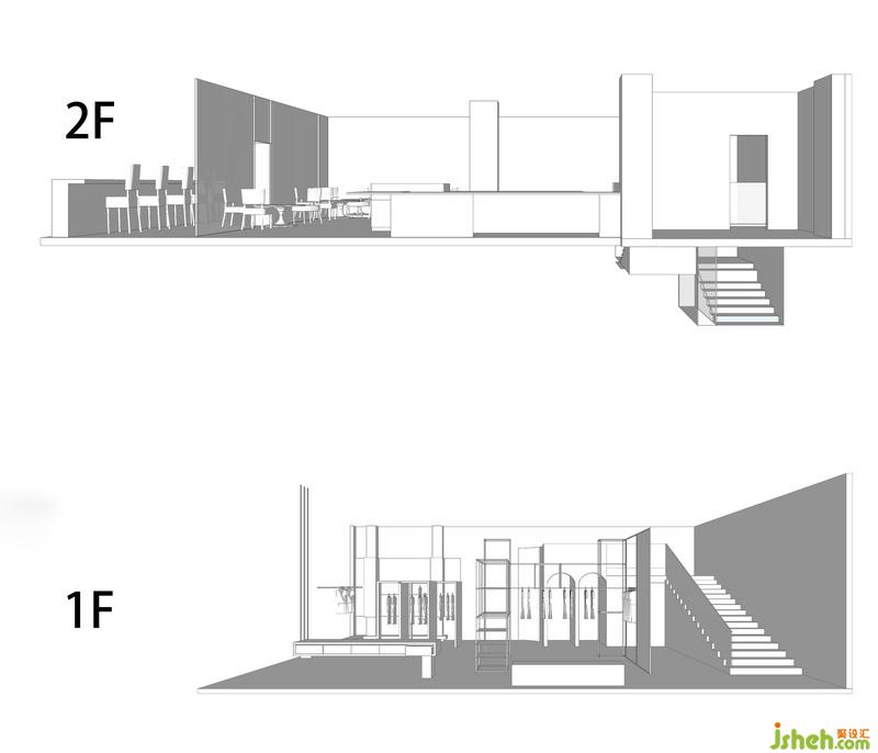 店內(nèi),天花上的線型光束,具備強烈的指向性和實驗性,仿佛帶領(lǐng)你去到那個新奇有趣的地方。由于買手店是銷售多樣性產(chǎn)品的,所以室內(nèi)設(shè)計師不希望它的銷售場景會是單一的,而更應(yīng)該是未知的樂趣和具備『換季』的能力。我們運用『裝置藝術(shù)』的概念,以不同材質(zhì)和不同構(gòu)造的展示,使空白場景因為不同的裝置獨立成區(qū),營造出一個充滿多樣性和趣味性的購物空間。