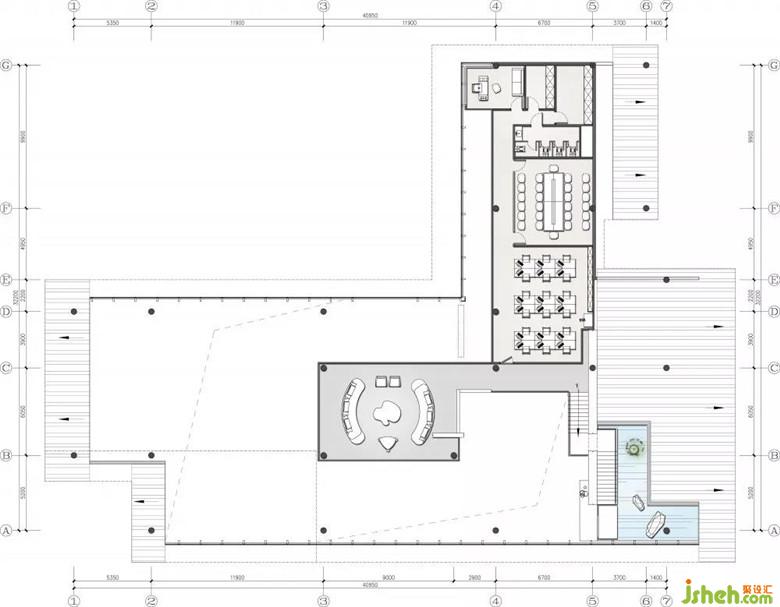 一樓接待區(qū)和二樓的VIP區(qū)之間,靜默存在又彼此串聯(lián)。吊腳樓強(qiáng)化了一樓與二樓架構(gòu)空間的起、承、轉(zhuǎn)、合,成就一種“你中有我,我中有你”的布局性手法,這不禁令人聯(lián)想到山城的大街小巷,跌宕錯落中又不缺乏奇幻的瑰想。