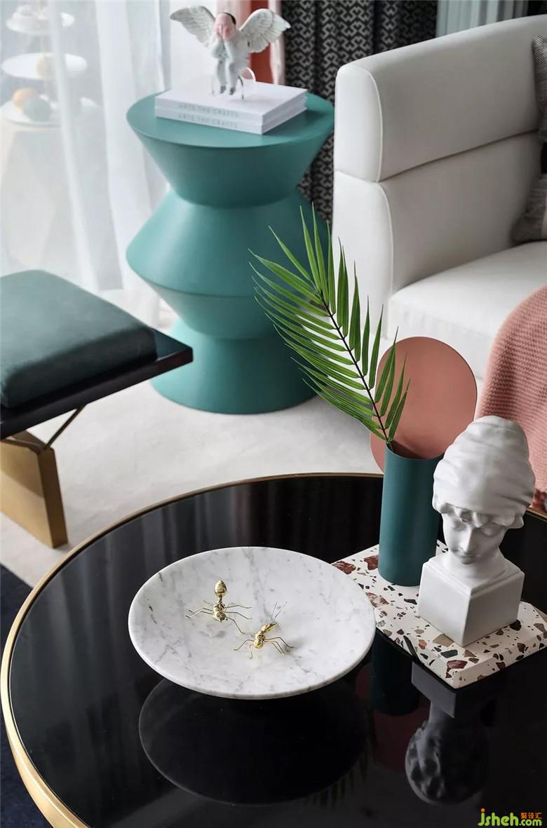 霧藍(lán)色的MAHDAVI置物柜呈現(xiàn)出寶格麗的奢華,經(jīng)典與時(shí)尚兼?zhèn)?;超脫的墨綠、粉藍(lán)點(diǎn)綴在ORNETTE沙發(fā)上,恰好平衡空間色彩,散發(fā)著活躍、溫馨的味道。