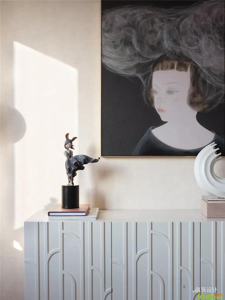 不累于俗,不飾于物,墻面的藝術(shù)裝置仿佛一圈圈光暈,時近時遠(yuǎn),似乎記憶與現(xiàn)實的交替,營造生活與性格的無他性、獨立性,以無創(chuàng)世
