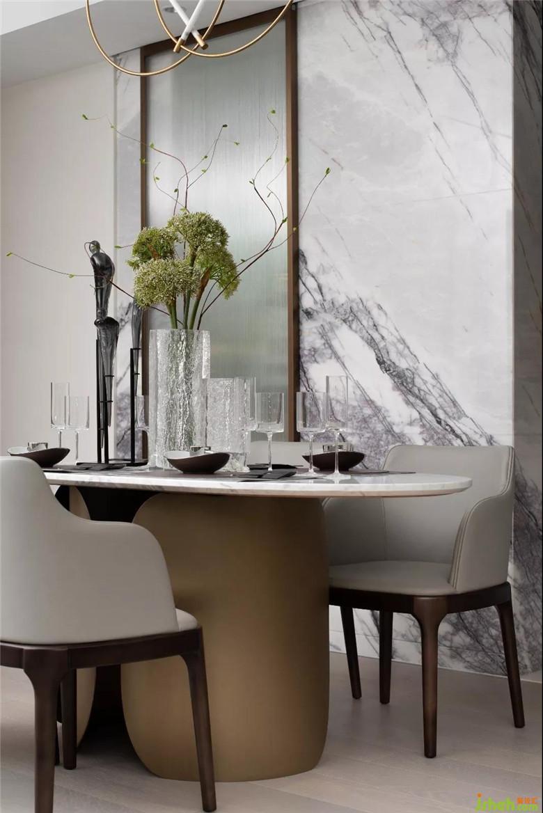 樣板房設計的大理石桌上盛著一縷陽光與花的芬芳,恰如有生命般在空間自由生長。廚房飄來妻子煲湯傳來的陣陣香味,丈夫座與餐廳品著剛開好的Whiskey,再來一首布魯斯吧!享受這份難得的愉悅時光。