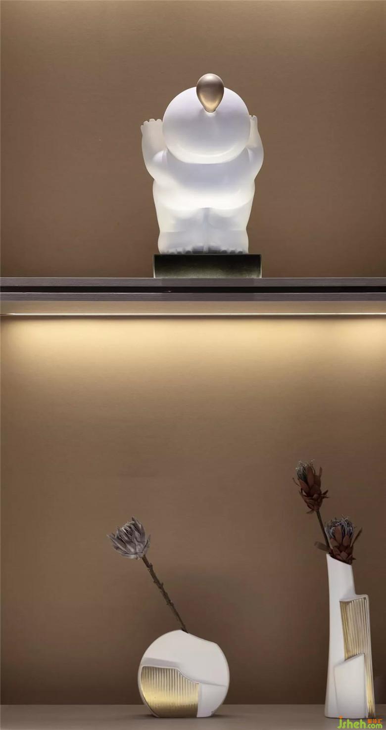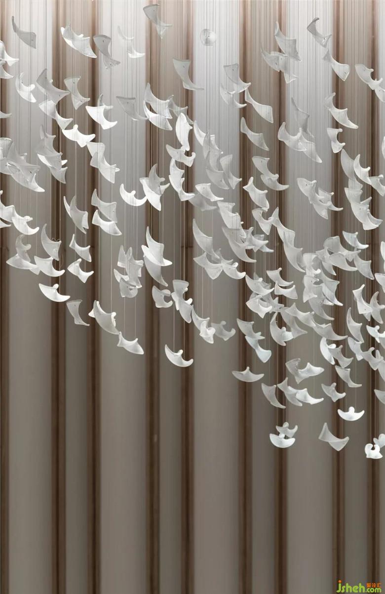 移步換景,「星河」的主題裝置續(xù)寫洽談區(qū)的氤氳飄渺,水晶燈飾以一種翩然的姿態(tài)堆疊空中,裝修公司來為訪客與場(chǎng)域提供一隅充沛的感知場(chǎng)景,點(diǎn)點(diǎn)星光將藝術(shù)的語(yǔ)言緩緩述說,恰似縹緲云霧散了又聚,別有意趣。