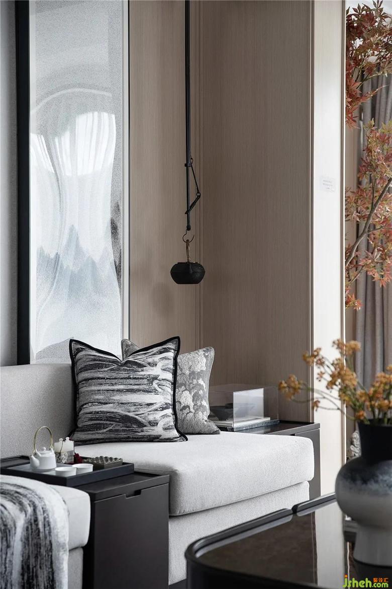 樣板房設(shè)計空間素墨色彩與紋理的相協(xié),現(xiàn)代形制中不乏綿綿古韻。清風入堂,輝光漫灑,斟上半盞清茗相鄰而坐,寧靜的不止是空間,更是心境。
