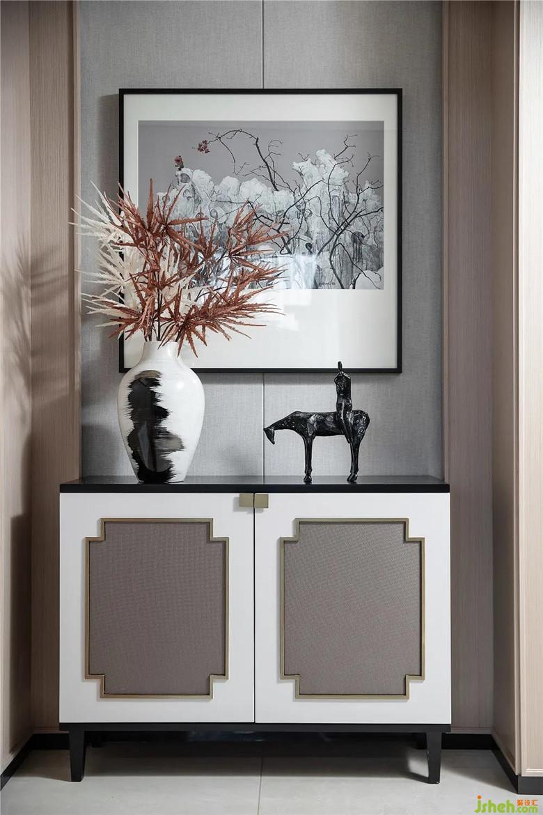 泊于墻上的山水畫,與素縞的花瓶、硬朗的雕塑,共同勾勒出豐盈而綿長的一首詩:寸寸微云,絲絲殘照。