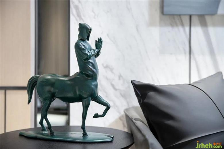 茶幾上的恐龍飾件,帶著一份意外趣味,獨特的Celeste椅子與Kvadrat羊毛織物軟墊的搭配,是設(shè)計在一成不變的節(jié)奏里,講述的細小而輕松的美好故事。