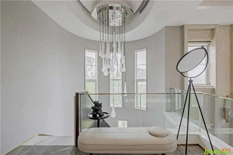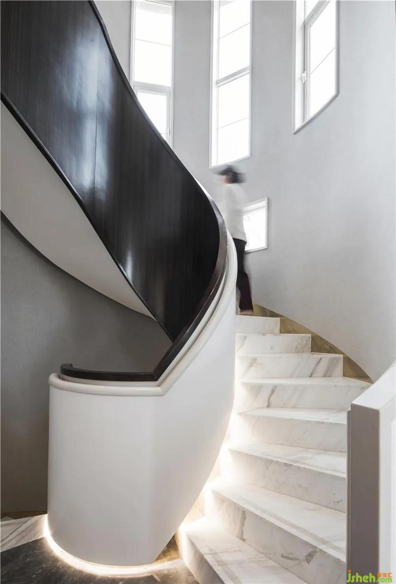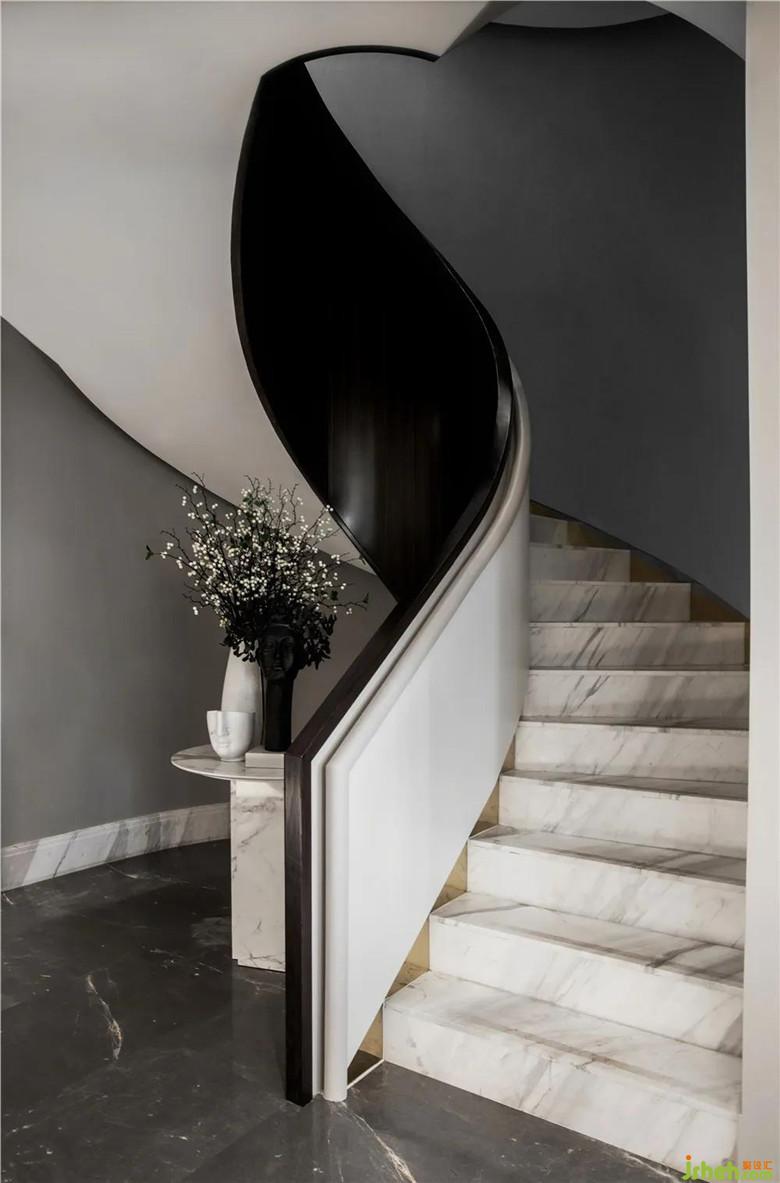 驚艷于樓梯區(qū)域的野逸氣息,一曲以木材譜曲、大理石填詞的漣漪旋律,帶我們進入另一個形式維度,看似靜默的、堅硬的、樸素的材質(zhì)組合,卻能和諧地相融于一室,造就空間曠遠疏朗的形體。樓梯間點綴的花束及藝術(shù)品灑落的綿綿星點,形成少即是多的點睛之筆,透出些許意境。