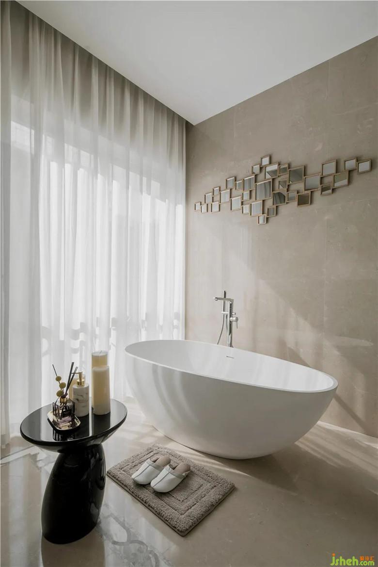 晨起后,時而有光透過紗幔柔柔灑在地下,與室內(nèi)溫吞細膩的質(zhì)感相迎,平添一種不疾不徐的生活筆觸。當設計脫離表面裝飾的束縛后,觸摸到瓶藝杯盞及床品時,都能使居住者的情感豐富起來,帶來一種直擊心靈的撫慰,溫馨生動,柔和寧謐。