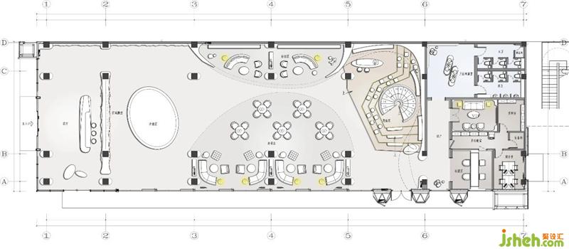 空間不可缺的是藝術(shù)感與文化性,同時(shí)還有通透、輕盈。設(shè)計(jì)不受風(fēng)格執(zhí)念所困,售樓處裝修設(shè)計(jì)打破傳統(tǒng)空間帶來的疏離感,星星點(diǎn)點(diǎn)的光柱伴著旋轉(zhuǎn)弧線射向沙盤區(qū),流動(dòng)形體下張弛有度,形成極具視覺的沖擊力。