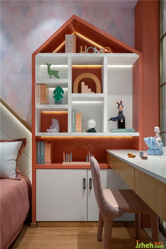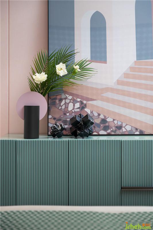 脫俗的櫻花粉和橘紅,其天生就帶有讓人愉悅的因子,樣板房設(shè)計(jì)空間色彩濃淡相宜,溫和靈動(dòng)的色調(diào)帶著夢(mèng)幻般的意境。地面水磨石星星點(diǎn)點(diǎn)的交匯出有趣形態(tài),在燈光的暈染下,帶著親切可及的力量。