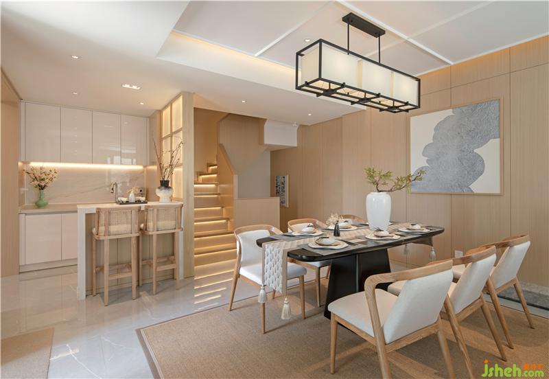 一步一風景、一景一陶然。一層整體利用原木色飾面和利落線條協(xié)調(diào)統(tǒng)一客餐廳氛圍,表述畫幅的純粹感與詩意感。全開放式布局營造空間的深度,客餐廳既自由開放卻也互不干擾。