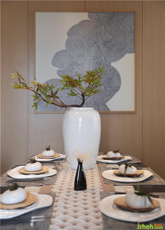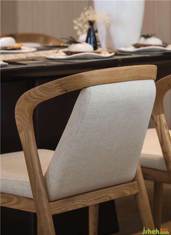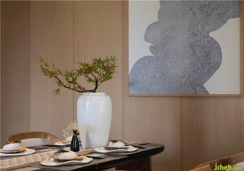 光,襯著景,好似為空間蒙上了一層濾鏡,在風(fēng)的撩撥下,更顯居所的溫潤(rùn)與澄靜。草色地毯平添空間的暖意,雖少了些耀眼的紋理,卻與整體相得益彰。棉麻的座椅、瓷具的風(fēng)姿,以及角落一隅的枯山水端景,物件的挑選都貫注著一致的輕松詩(shī)意,細(xì)微之下,靜靜訴說(shuō)著禪式意境。