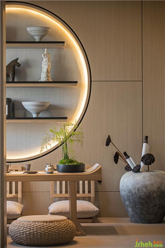 草蒲坐墊、枯枝蓮蓬著力呈現(xiàn)高雅的古今格調