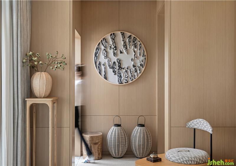 景,隨水墨鋪染入眼入心,在三兩翠枝、蔥蘢光線中,呈現(xiàn)一派曼麗、純凈之態(tài),涓涓流淌出空間淡然儒雅的詩意,家人席地而坐,游戲嘻樂,品茗休憩,均能歡愉無限。