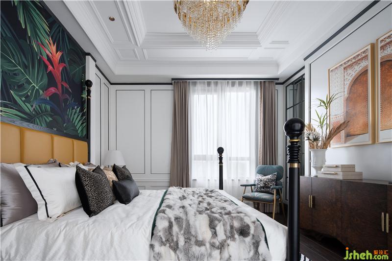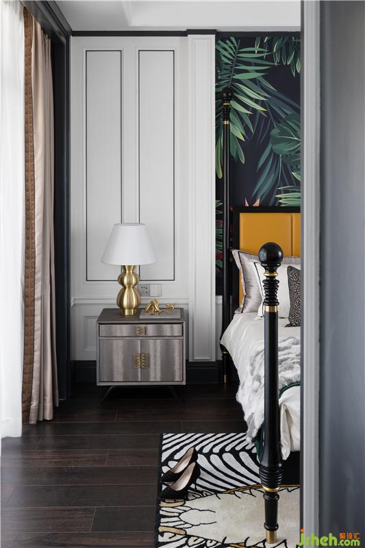 溢美之詞繼這處氣質(zhì)空間溢出,墻面裝飾植物背景,自然與空間的美感融合一體,近景遠(yuǎn)景都有美的存在。沉穩(wěn)深藍(lán)與高級(jí)黑搭配,演繹衣帽間專屬優(yōu)雅,點(diǎn)綴的金屬跳躍在空間中,增添一絲時(shí)尚與輕奢。