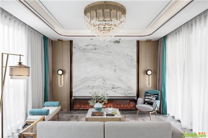煙光嵐影,四時俱勝,客廳似一幅勝景畫卷,藝術(shù)的豐贍暢然入室。在方寸之間,藏置世間一卷煙火畫面。