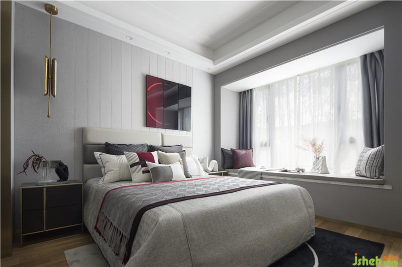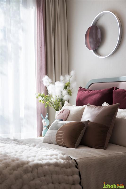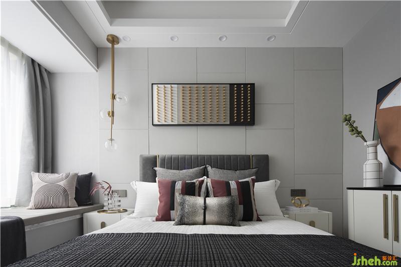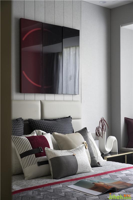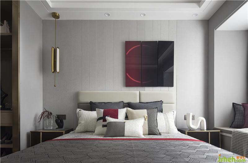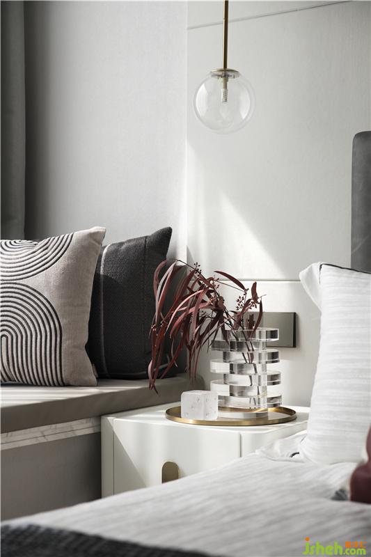 美的飾物的點(diǎn)綴,帶著恰到好處的驚喜,垂落的吊燈以玻璃的剔透質(zhì)感盡顯優(yōu)雅,床頭的方形裝飾帶著幾許摩登氣息,穩(wěn)重中不失意趣。
