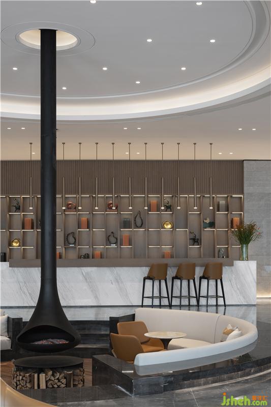 同時以壁爐為設計理念的圍合空間成就整體的視覺中心