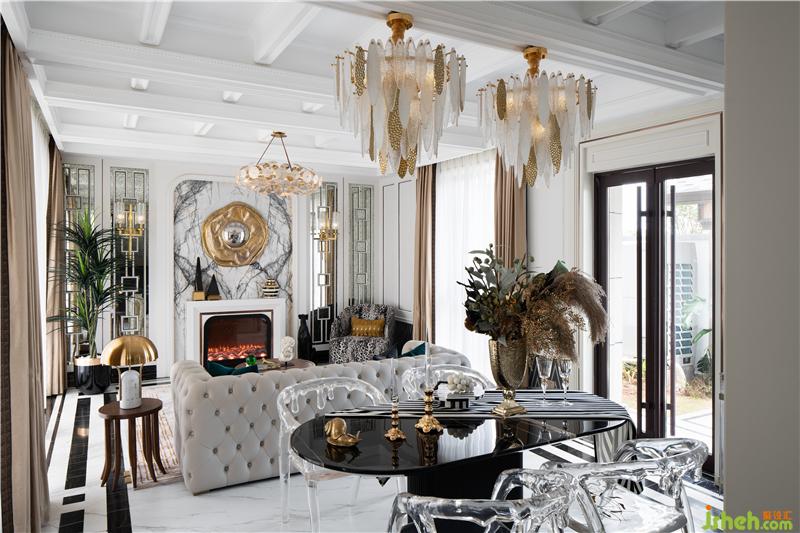 留存至今的古典藝術,其獨特的工藝與結構是此次設計的靈感之源。步入門廳,奇異的飾物增強了視覺的第一感,設計將玻璃、黃銅和石材結合在一起,呈現(xiàn)一派“狂野野獸”的格調(diào)。