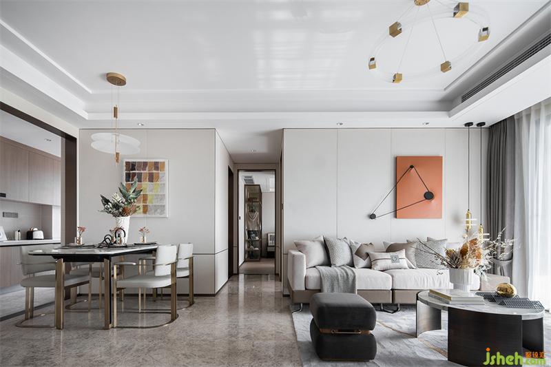 設(shè)計(jì)師以米色為主調(diào),白凈素雅的氛圍,寬敞明亮的客廳讓空間呈現(xiàn)出大片模式。褪去繁復(fù)多余的裝飾,生活的場(chǎng)景需要認(rèn)真經(jīng)營(yíng),一切都是精致生活的側(cè)寫(xiě)。