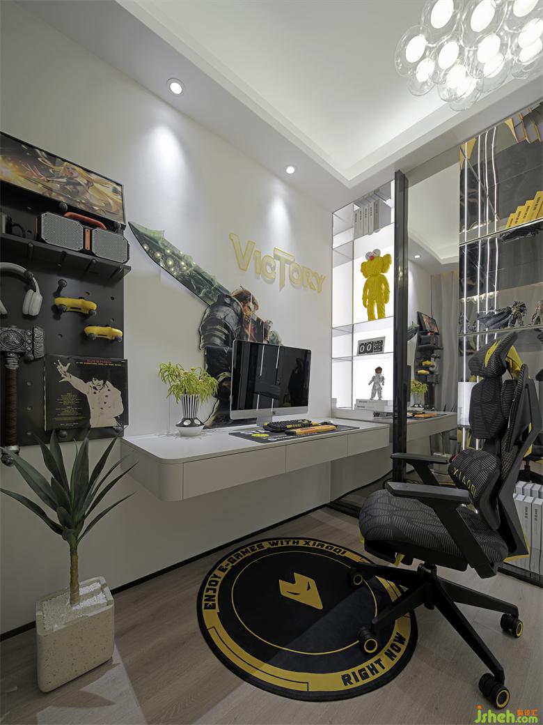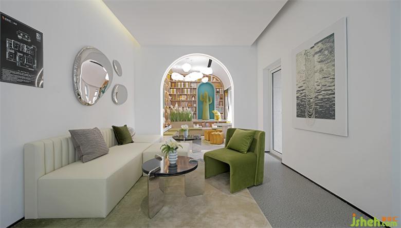 兒童區(qū)的功能集教育、培訓(xùn)、娛樂多功能為一體。設(shè)計上不僅兼?zhèn)淞硕囗椆δ?,樣板房設(shè)計通過模糊天花墻身及地面的框架界限,以弧形線條的語言順勢而下,構(gòu)造空間的美學(xué)層次以繪本圖書館為主題,打造屬于孩子們的快樂星球。