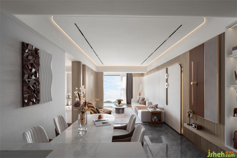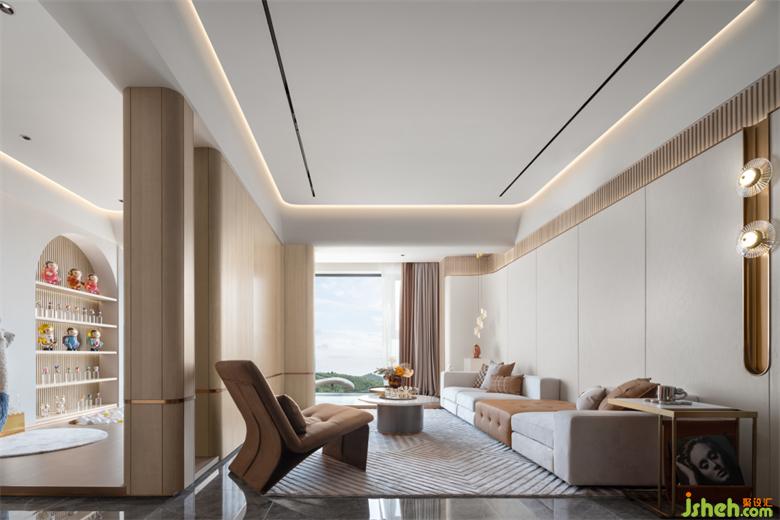 設(shè)計(jì)語(yǔ)言干練而獨(dú)特,體現(xiàn)著對(duì)生活的極致考究以及新消費(fèi)時(shí)代下的奢居探索。樣板房設(shè)計(jì)其質(zhì)樸純粹的場(chǎng)域精神,打破界限,為建筑增添靈魂,予人家的歸屬與期待。