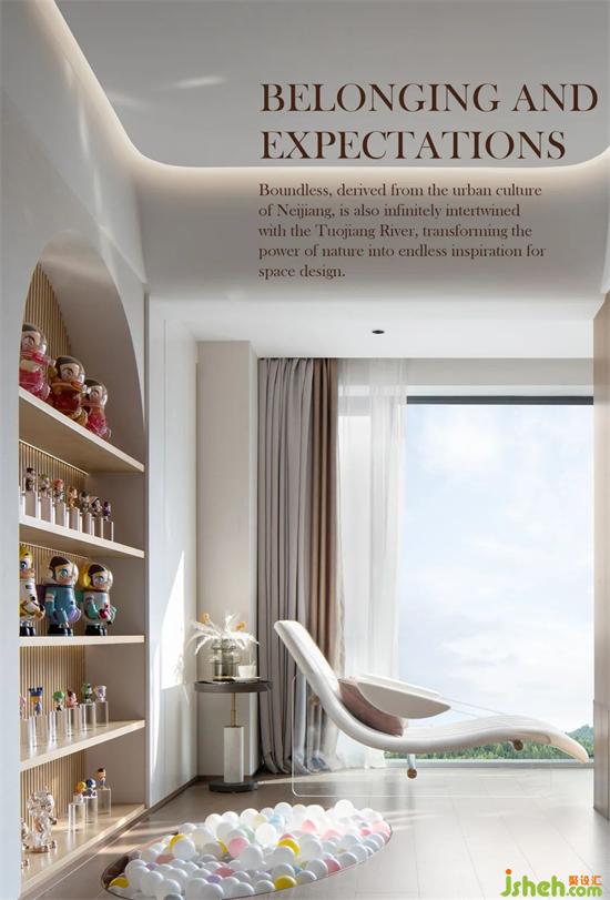 無(wú)界,源于內(nèi)江大千文化的城市文脈,亦在與沱江的阡陌縱橫中無(wú)限交融,把自然的力量轉(zhuǎn)化為空間設(shè)計(jì)的無(wú)盡靈感。