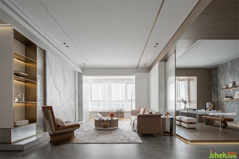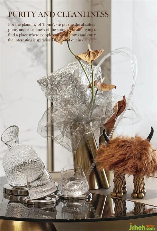 懸浮透明的茶幾,為茶室增添了幾分浪漫色彩,去貼合目標(biāo)人群閱歷世界之美后的靜謐安然。樣板房設(shè)計(jì)設(shè)計(jì)于人的體驗(yàn),同樣是有顏色、有聲音、有味道,喚起內(nèi)在的精神共鳴。單是風(fēng)格色彩,就結(jié)合了意式的簡(jiǎn)約、宋式的簡(jiǎn)省,透射出奢華的淺色、淡雅的白。