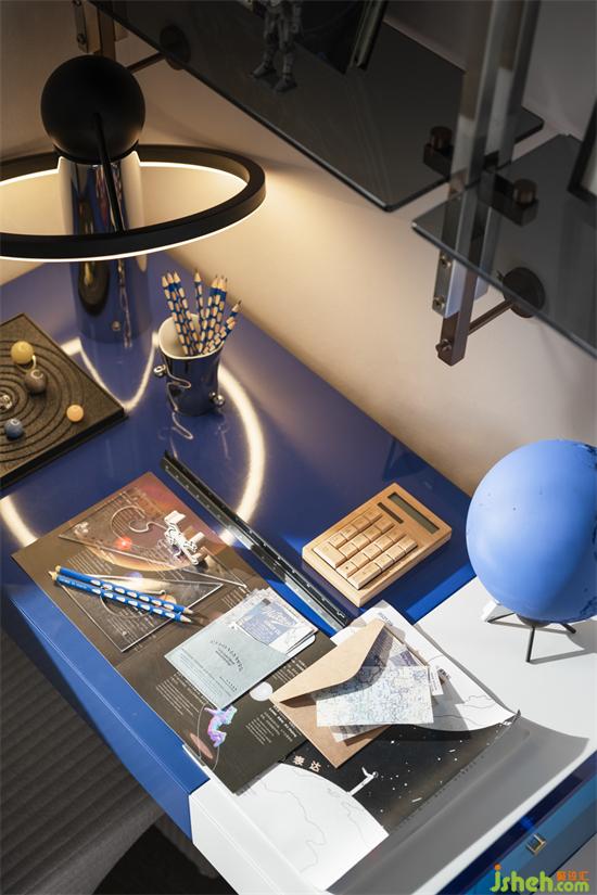 與海洋平行的是整個無界的夜晚天空,樣板房設(shè)計正如村上春樹所說:“看??淳昧讼胍娙耍娙艘姸嗔讼肟春?。”住進無盡藍的空間里。