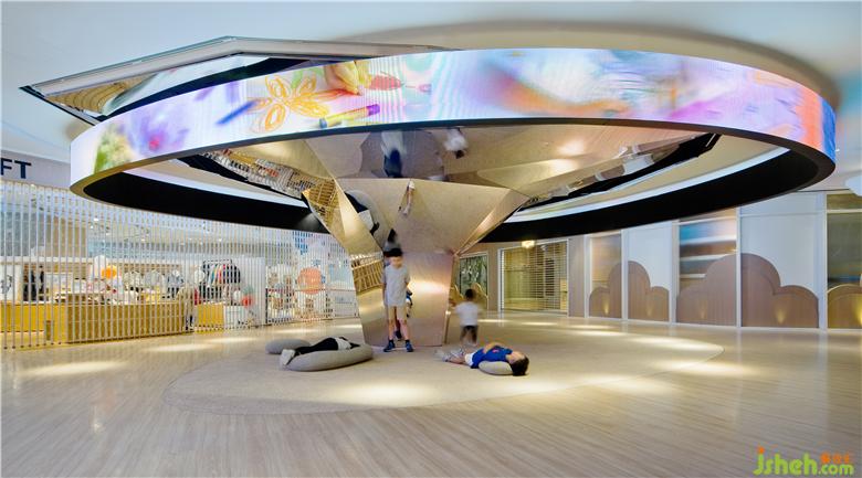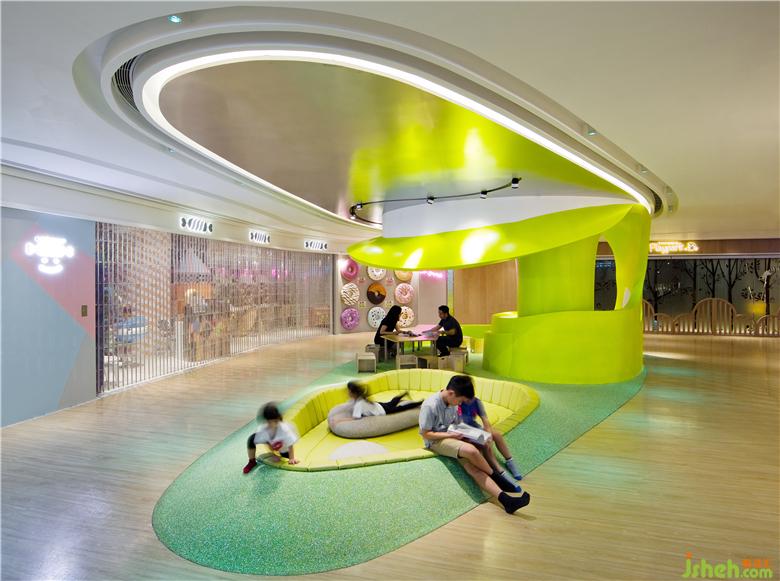 “Donut Playhouse”包括三個主要區(qū)域:身體,智慧和心靈。從兒童的角度出發(fā),基本的點,線,面元素組成了不同的空間功能:分別為運動空間,學(xué)習(xí)空間及表演空間。我們通過內(nèi)省,探索和發(fā)掘來培育成長中的孩子,室內(nèi)兒童樂園設(shè)計以提高他們的體格,思想和精神素質(zhì)。公共設(shè)施包括禮賓臺,座椅及導(dǎo)示系統(tǒng)均按照兒童人體工學(xué)需求而設(shè)計。親子洗手間為成人和兒童的身高量身打造:廁格,洗手中島,男洗手間內(nèi)的”Co-wee-wee”區(qū)域均經(jīng)過專門設(shè)計,可提供以用家為本,有趣且超越期望的體驗以建立更緊密的人際關(guān)系,這都是童趣和增進孩子自尊心的體現(xiàn)。