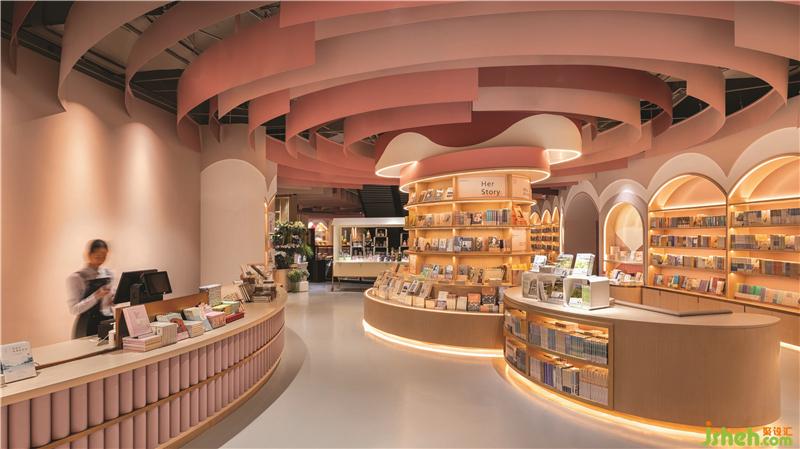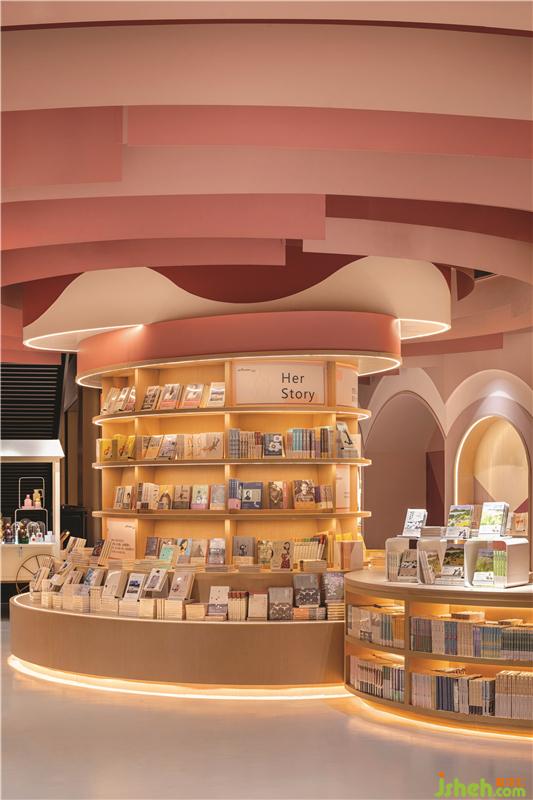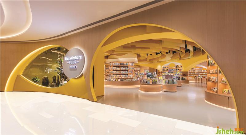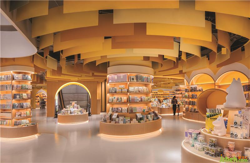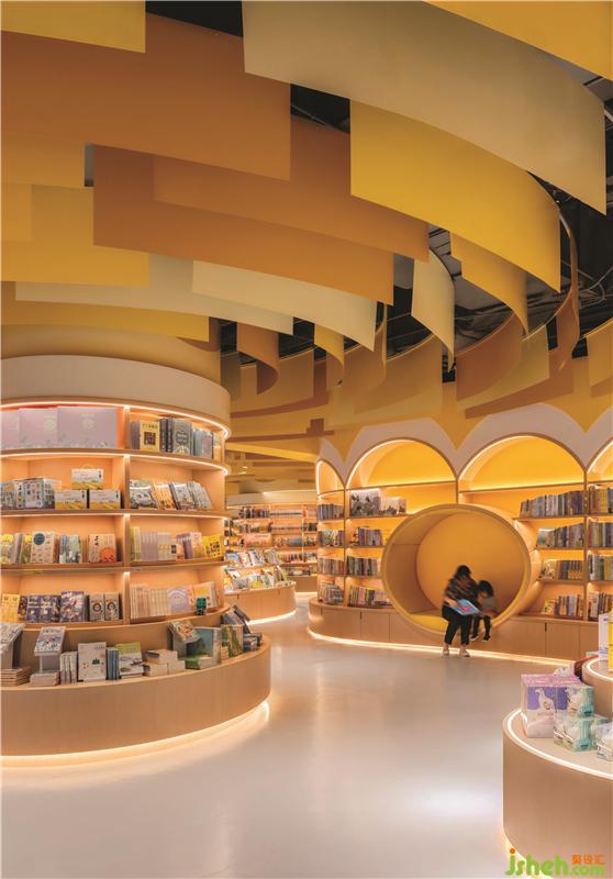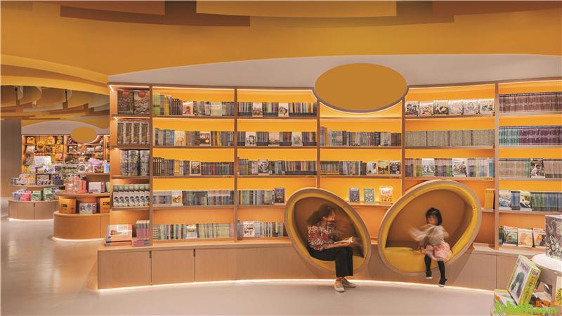 不同的曲線組合創(chuàng)建了具有不同隱私級別的閱讀區(qū)域。閱讀洞穴使父母和孩子可以專心讀書。兒童書店設計圓型特色柱提供了主題產(chǎn)品展示和座位功能,并成為每個區(qū)域的焦點。