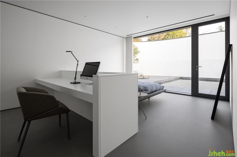 在色彩裝飾層面,拒絕花俏,用最簡單清新的色彩和造型來裝飾空間。茶室與庭院,用玻璃墻分割,不僅延伸了室內(nèi)空間,還將自然與空間融為一體。