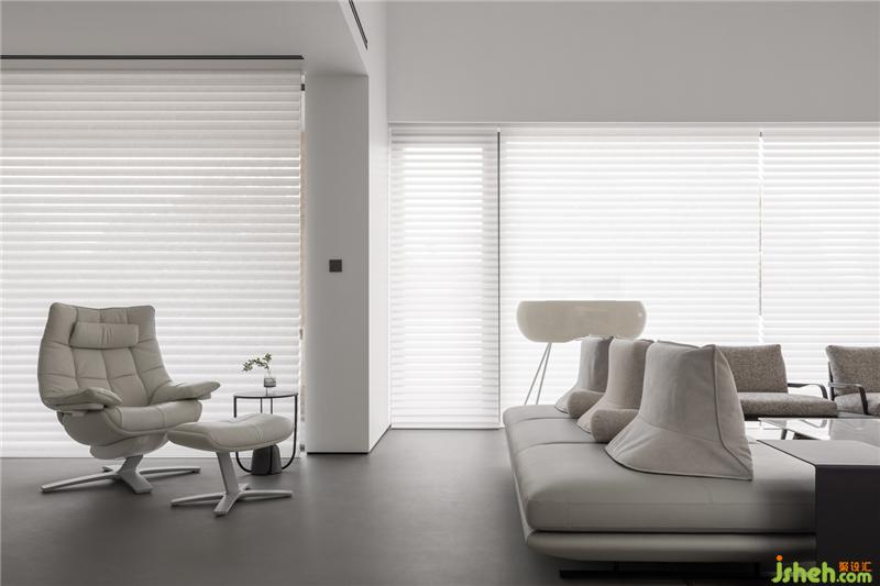 為了貫徹安靜純粹的生活理念,設(shè)計(jì)師在空間的材質(zhì)與色彩的選擇上采用簡(jiǎn)單、自然的風(fēng)格來(lái)裝飾,如黑白灰三色及大理石的運(yùn)用;其次,在室內(nèi)多處地點(diǎn)放置了盆栽綠植,打破了空間的沉悶感。造型方面,用極簡(jiǎn)線(xiàn)條來(lái)構(gòu)建空間結(jié)構(gòu),大面積的留白也讓空間看起來(lái)干凈清爽。