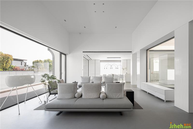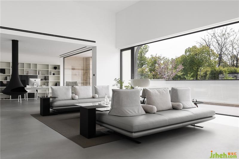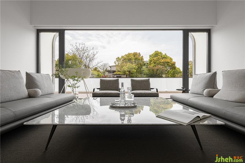 利用玻璃幕墻,將自然風(fēng)景與室內(nèi)空間組成一個(gè)有機(jī)的整體,讓自然與空間相得益彰,形成室內(nèi)的自然景觀。拋卻生活與工作的煩惱,回歸本心,感悟生活、感悟自然。