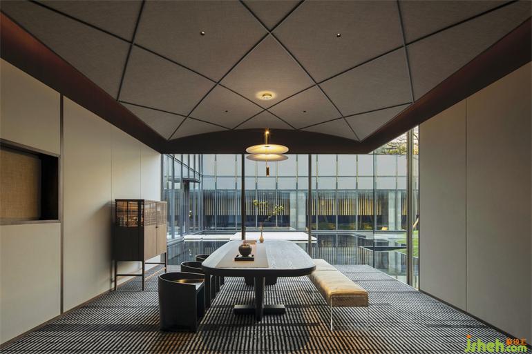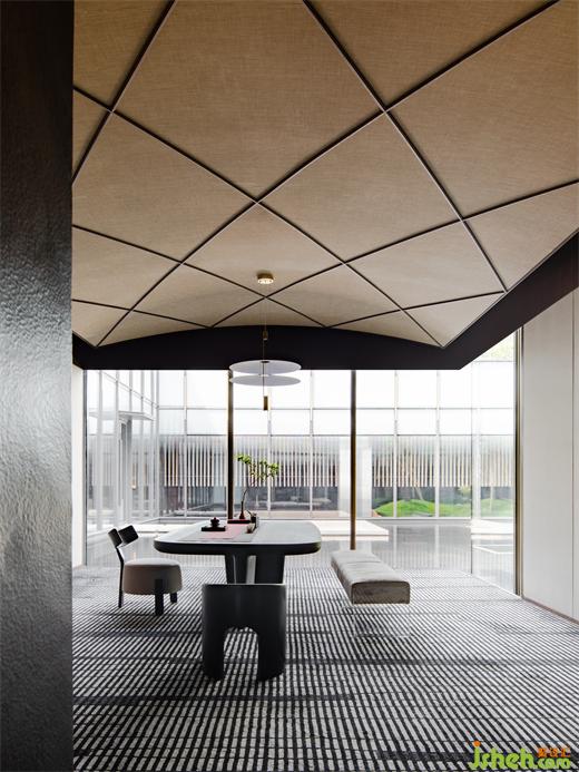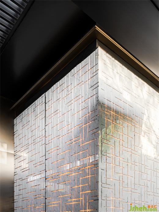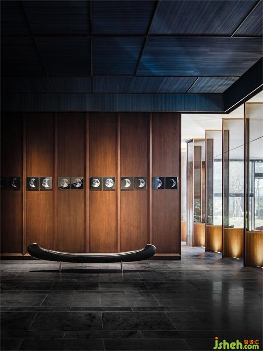 “覺知亭”四面石墻低垂,僅與水面相接處留有間隙。南京會(huì)所設(shè)計(jì)投身其中,喧鬧世界于己無關(guān),水面溫柔如鏡,投射一派清快。水天相接處獨(dú)己一人,空空畫境里滿是自在。“覺知亭”用一種類似于擠壓的方式完成了空間衍生,建立在簡潔審美上的試驗(yàn)性設(shè)計(jì)提升了空間美感。