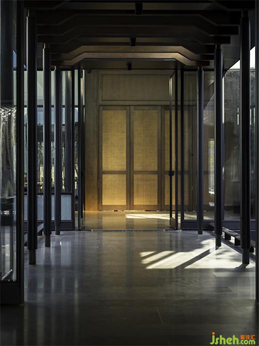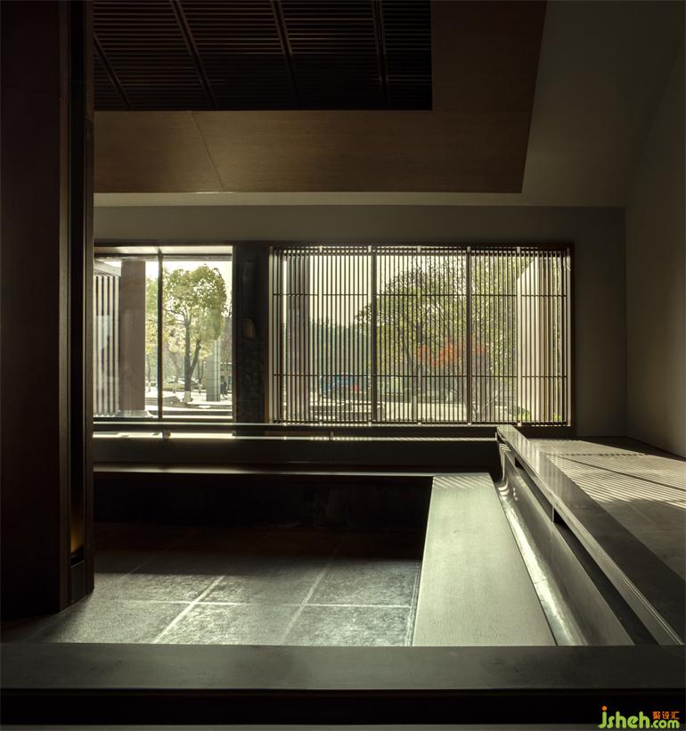 我們堅持對自然的感知與人造世界相協(xié)調的原則,將建構的體量融入光影鑲嵌于場地。南京會所設計場地內(nèi)整體構成呈現(xiàn)出對稱及不穩(wěn)定性平衡狀態(tài),院與屋比例接近均分,二者相輔相成。