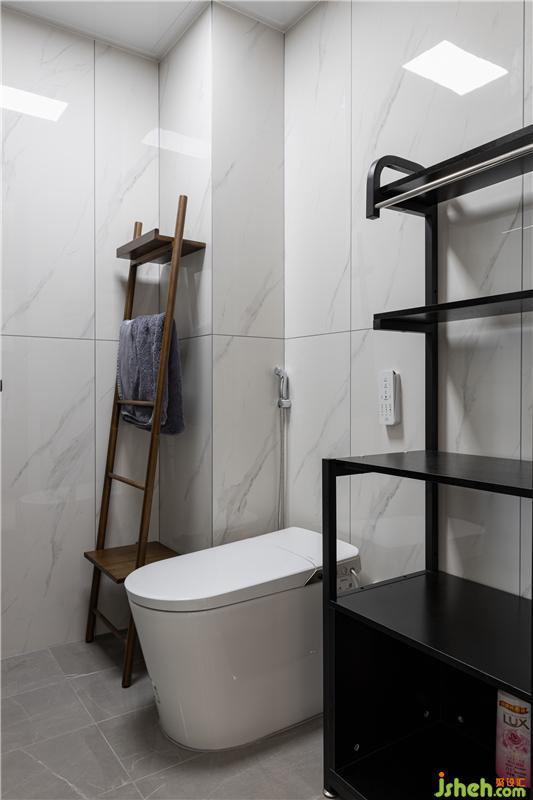 客衛(wèi)原位于客廳書(shū)吧正后方,通過(guò)改變動(dòng)線,不僅形成了干濕分離,還避免了從客廳進(jìn)入,保證了客廳背景墻的完整性。