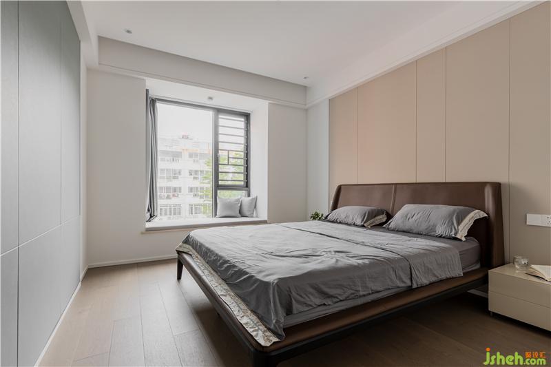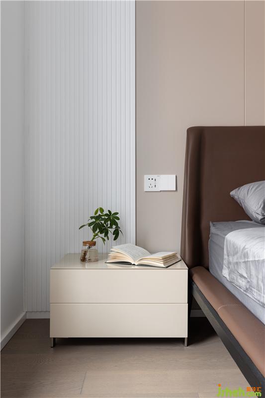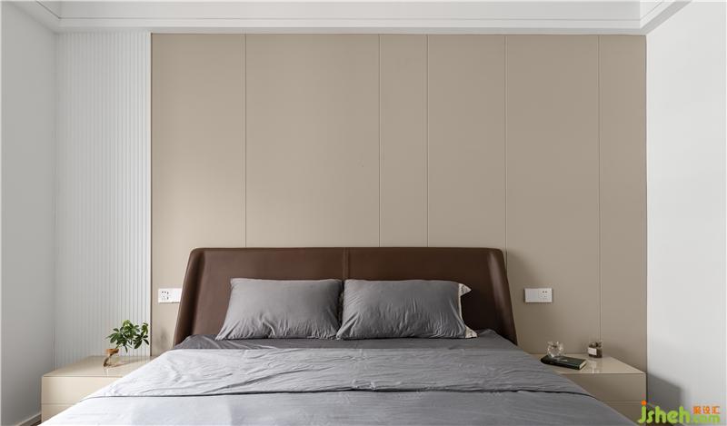 皮質(zhì)硬包留縫設(shè)計(jì)的米色床頭背景墻搭配一點(diǎn)點(diǎn)白色線條板,簡(jiǎn)約溫馨。有時(shí)候給生活留一點(diǎn)白,讓未來(lái)去添上色彩。