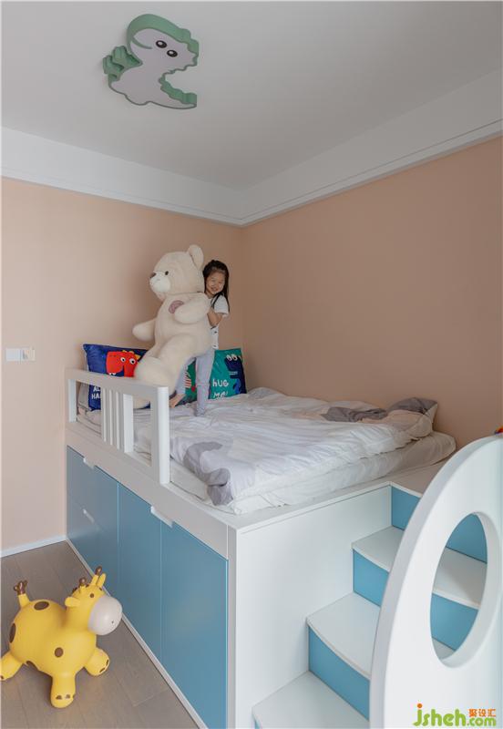 這個(gè)房間被陽(yáng)臺(tái)占用一部分,但還是留足了活動(dòng)區(qū)域,色彩更豐富活潑了一些,爬梯床下方是妹妹的秘密基地,放滿了她的各種玩具。床底下作為補(bǔ)充收納真的很方便,而且還比榻榻米更加通風(fēng)。