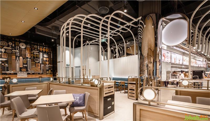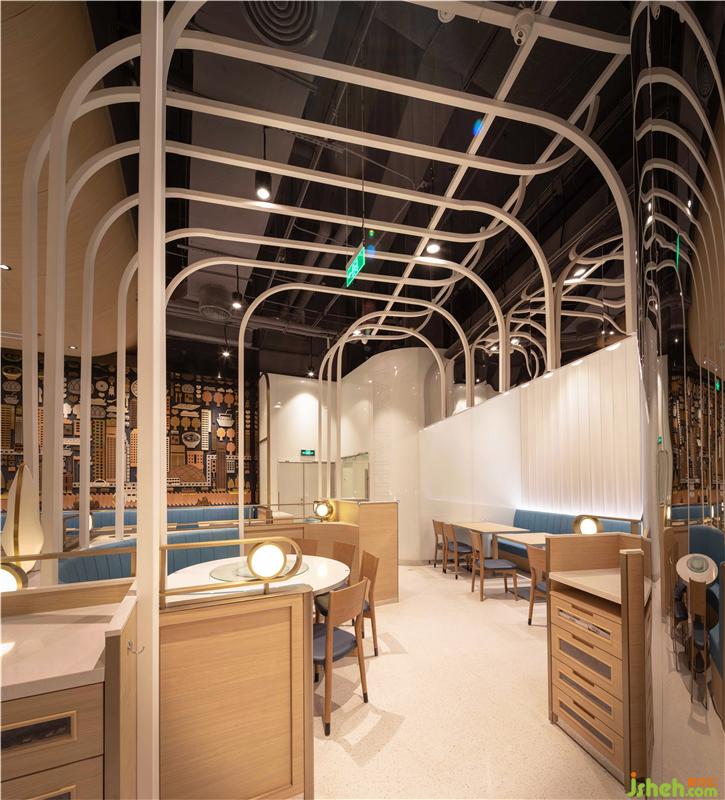 白色流線條造型,既起到劃分區(qū)域的作用,又在保證空間通透的同時(shí),稍稍保障私密性,顧客更愿意在這里閑坐,靜享輕松時(shí)光。
