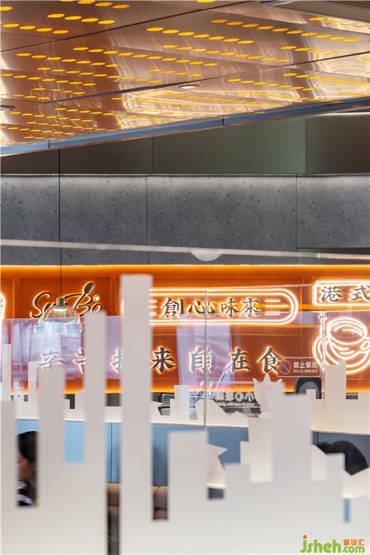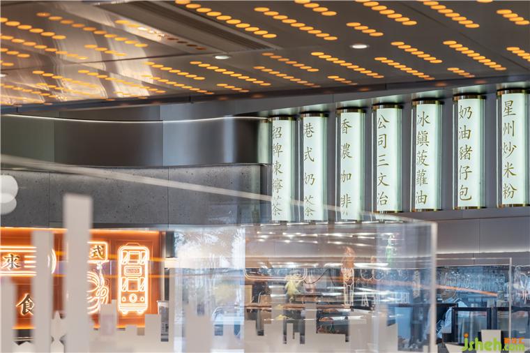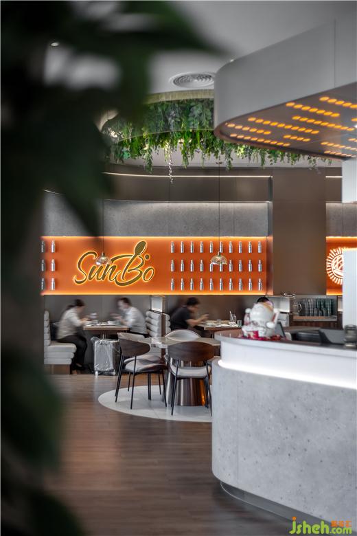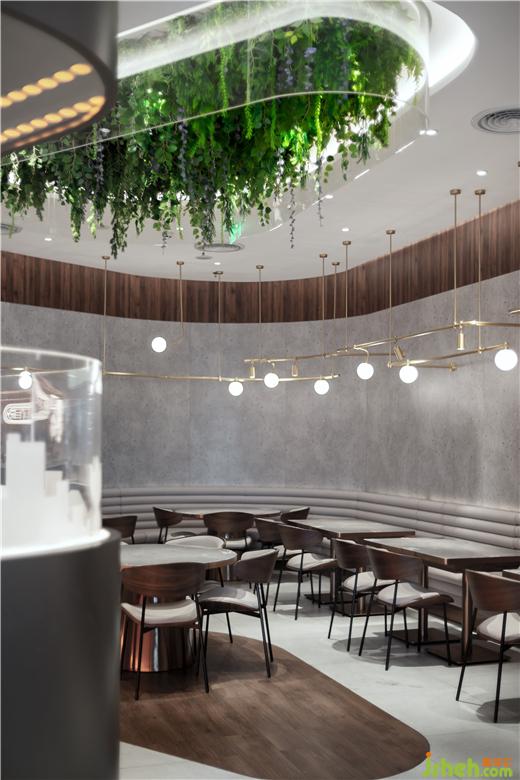 天花的設計采用生態(tài)主義,綠植垂直而下讓室內的空間顯得生機勃勃,茶餐廳設計也象征著餐廳充滿生機,寓意著生意蒸蒸日上。簡約的金屬吊燈以及其他的燈帶都屬于暖色調,讓整個就餐氛圍更溫馨。茶餐廳給人傳遞的是一種舒適休閑的感覺,所以要注重色彩的亮度,尤其在燈光或者裝飾材料上,茶餐廳設計以暖色系居多,明亮的燈光有刺激用餐者食欲的功效。
