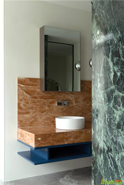 南京裝修設(shè)計(jì)幾何形體的設(shè)計(jì)風(fēng)格成為一種符號,餐桌與島臺之間利用鋼板銜接,與豎向結(jié)構(gòu)柱網(wǎng)交錯,一直延續(xù)的軸線,綠色石材島臺架空脫離地面,輕盈之感油然而生。通過它來表達(dá)居者訴求,也在展現(xiàn)理性建構(gòu)之美。