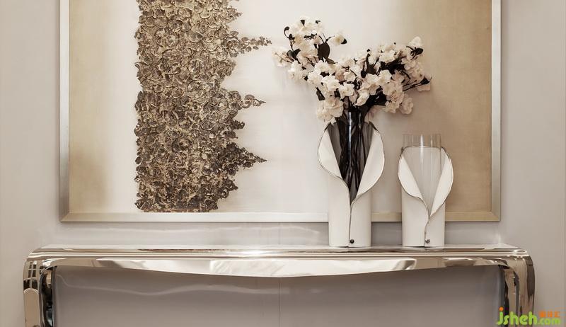 本案設計理念 主張以裝飾的手法達到視覺上的審美愉悅。以輕奢為主調(diào)讓我們在紛擾的現(xiàn)實生活中找到平衡,締造出一個令人心弛神往的寫意空間。整體布局靈活多變,室內(nèi)設計師以陳設藝術品及金屬線條材質(zhì)來營造大氣、自然、輕奢的裝飾美學氛圍。墻面、地面、家具陳設等均以簡潔的造型、精細的工藝為其特征,強調(diào)品質(zhì)感和細節(jié)處理。在色彩搭配方面以暖色為主,溫馨的客桌花束、直觀大氣的圓形沙發(fā),精致的軟裝搭配帶著淡淡的隨意,隨著輕輕的希冀讓人感受到的是空間彌漫的溫馨與舒暢。對入戶、餐廳、電視墻、過道、及吊頂?shù)膭泳€設計處理,使房屋每一次都能成為我們值得回味的亮點。