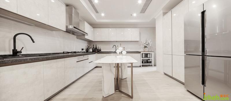 本戶型廚房空間從日常居住的功能性、舒適性上與生活陽臺連為一體 ,保證合理的操作環(huán)境、為空間營造出一份自由愜意與輕奢的感官體驗。